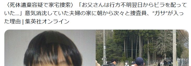 〈死体遺棄容疑で家宅捜索〉「お父さんは行方不明翌日からビラを配っていた…」意気消沈していた夫婦の家に朝から次々と捜査員、“ガサ”が入った理由 | 集英社オンライン https://t.co/bviqYzSNtL