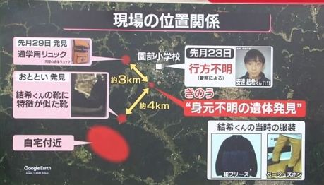 | 身元 | DNA・歯型照合で安達結希くんと判明 |