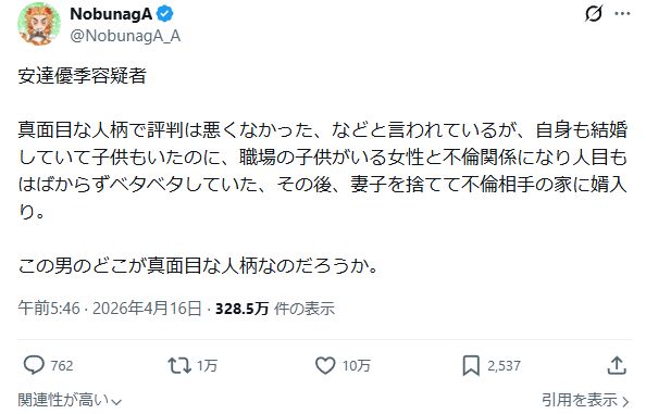 X投稿や複数の報道によると、安達容疑者は結希くんの母親と再婚する際、婿入りする形で「山本」から「安達」へ改姓したとされています。 この点は、事件後にネット上で大きく拡散されている情報のひとつです。婿入りの背景には、