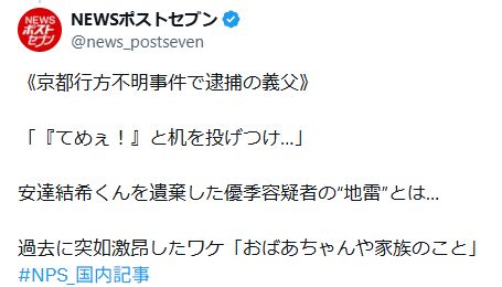《京都行方不明事件で逮捕の義父》