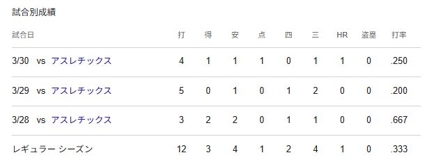 翌3月29日の試合でも岡本は以下の成績で、2試合連続で出塁。